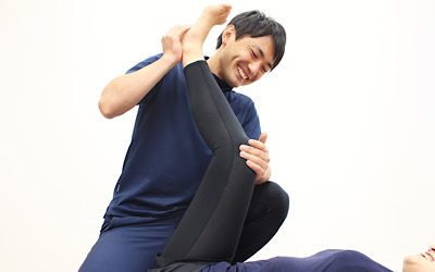 筋肉を適切に動かしていただくためには、正しい姿勢やフォームで運動をすることが重要です。当ジムでは、正しい姿勢やフォームで運動をしていただけるように、トレーナーが以下のように医学的ストレッチやフォームチェックを行いながら運動をしていただきます。
